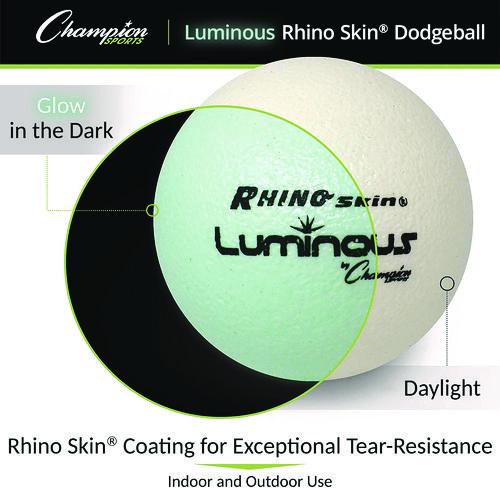 Add a touch of excitement to your dodgeball games with the Luminous Rhino® Skin balls. These high-tech balls feature a unique glow-in-the-dark design, making them perfect for indoor and outdoor play, especially in low-light conditions. The long-lasting, no-sting construction ensures a safe and enjoyable experience for players of all ages. Kids love the bright colors and the thrill of playing with balls that light up in the dark. A convenient mesh bag is included for easy storage and transport. Experience the next level of dodgeball fun with the Luminous Rhino® Skin balls.