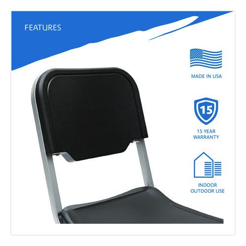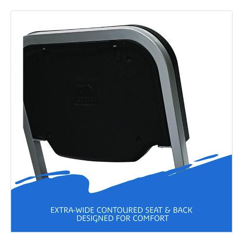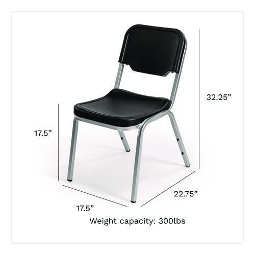 Product Details** Global Product Type Multipurpose Nesting & Stacking Chairs Color Family Black Arms Included No Pneumatic Seat Height Adjustment No Tilt Tension/Tilt Lock No Integral Lumbar Support No Seat Surface Material Family Plastic Recommended Application Area(s) Breakroom & Foodservice,Conference & Meeting,Guest/Reception & Lounge Seat Color Black Back Color Black Weight Capacity Supports Up to 500 lb Back Height Adjustment No Seat Glide Mechanism No Knee Tilt No Synchronized Knee Tilt No Dual-Action Tilt No Posture Lock No Multi-Task Control No Asynchronous Control No Dual-Clutch Posture Control No Variable Synchro-Tilt No Overall Width Maximum 17.5″ Overall Depth Maximum 22.75″ Overall Height Maximum 32.25″ Seat Width Maximum 15.5″ Seat Depth Maximum 17.5″ Seat Height Maximum 17.5″ Seat Surface Material Blow-Molded High-Density Polyethylene Back Width Maximum 15.5″ Back Height Maximum 16″ Back Surface Material Blow Molded High-Density Polyethylene Back Surface Material Family Plastic Base/Frame Color Silver Base/Frame Material(s) Powder Coated Steel Tube Caster/Glide Details Four Plastic Non-Marring Glides Stacking Density Up to 6 Product Biodegradability in Days 0 Compliance Standards Meets or Exceeds ANSI/BIFMA Standards Pre-Consumer Recycled Content Percent 35% Post-Consumer Recycled Content Percent 0% Total Recycled Content Percent 35% Country Of Origin US Carton Weight 62 lbs. Carton Pack Quantity 4 EA Pack Quantity 0 UPC 674785641118 UNSPSC 56112102 Shipping Weight & Item Dimensions Weight 62 lbs. Length 43 in Height 18 in Width 25 in Warranty Manufacturer’s limited 15-year warranty.