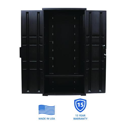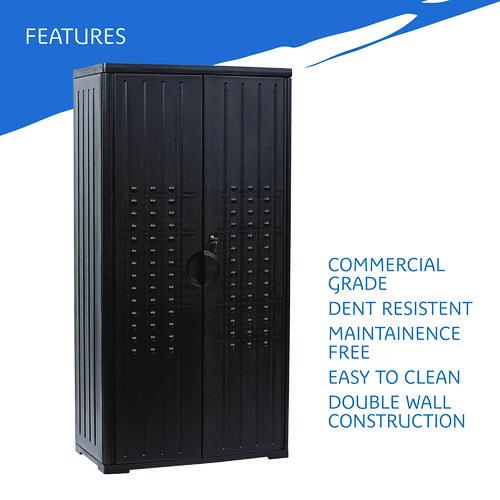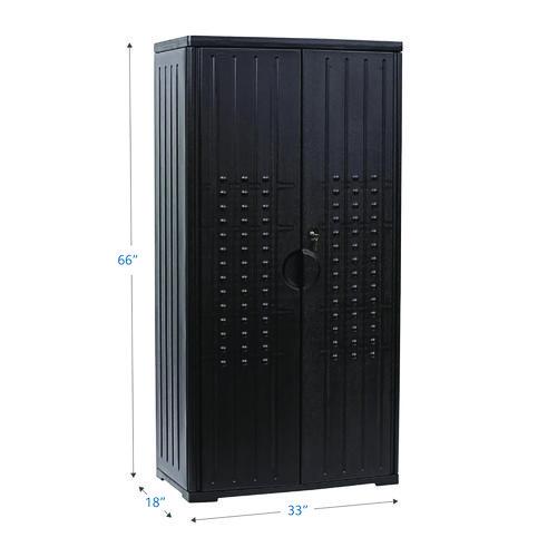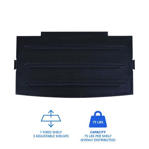 Product Details** Global Product Type Office & All-Purpose Storage Cabinets Color(s) Black Number of Shelves 3 Shelf Capacity (Weight) 75 lbs Material(s) Blow-Molded High-Density Polyethylene Overall Width 33″ Overall Depth 18″ Overall Height 66″ Door Quantity 2 Interior Volume Capacity 18.4 cu ft Series Name Iceberg OfficeWorks™ Product Biodegradability in Days 0 Compliance Standards Meets or Exceeds ANSI/BIFMA Standards Pre-Consumer Recycled Content Percent 35% Post-Consumer Recycled Content Percent 0% Total Recycled Content Percent 35% Special Features 66″ High Cabinet-Three shelves, two adjustable. 75-lb capacity per shelf. 18.4 cu ft. Country Of Origin US Carton Weight 84 lbs. Carton Pack Quantity 1 EA Pack Quantity 0 UPC 674785925515 UNSPSC 56101530 Shipping Weight & Item Dimensions Weight 84 lbs. Length 68 in Height 12 in Width 22.5 in Warranty Manufacturer’s limited fifteen-year warranty.
