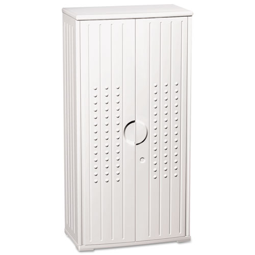 Product Details** Global Product Type Office & All-Purpose Storage Cabinets Color(s) Platinum Number of Shelves 3 Shelf Capacity (Weight) 75 lbs Material(s) Blow-Molded High-Density Polyethylene Overall Width 33″ Overall Depth 18″ Overall Height 66″ Door Quantity 2 Interior Volume Capacity 18.4 cu ft Series Name Iceberg OfficeWorks™ Product Biodegradability in Days 0 Compliance Standards Meets or Exceeds ANSI/BIFMA Standards Pre-Consumer Recycled Content Percent 35% Post-Consumer Recycled Content Percent 0% Total Recycled Content Percent 35% Special Features 66″ High Cabinet-Three shelves, two adjustable. 75-lb capacity per shelf. 18.4 cu ft. Country Of Origin US Carton Weight 80 lbs. Carton Pack Quantity 1 EA Pack Quantity 0 UPC 674785925539 UNSPSC 56101530 Shipping Weight & Item Dimensions Weight 80 lbs. Length 68 in Height 12 in Width 22.5 in Warranty Manufacturer’s limited fifteen-year warranty.