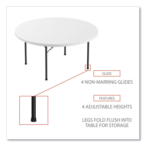 Round Plastic Folding Table, 60" Diameter x 29.25h, WhiteRound Plastic Folding Table, 60″ Diameter x 29.25h, White