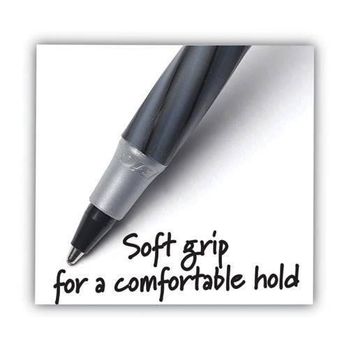 Product Details** Global Product Type Ballpoint Pens Pen Style Stick Pen Tip Type Conical Pen Point Size Type Medium Color Family Black Erasable Ink No Refillable No Pen Sub-Brand & Product Family Round Stic Grip Xtra Comfort Pen Type Ballpoint Pen Pen Point Size 1.2 mm Pen Ink Color(s) Black Pen Barrel Color(s) Gray/Black Pen Cap Color(s) Smoke Airplane-Safe Ink Yes Low-Viscosity Ink No Pen Grip Type Contoured Rubber Visible Ink Supply No Pocket Clip Indicator Yes Product Biodegradability in Days 0 Pre-Consumer Recycled Content Percent 0% Post-Consumer Recycled Content Percent 0% Total Recycled Content Percent 0% Footnote 1 Value Pack—Stock up and save Special Features Easy-Glide System®—Exclusive ink technology delivers 50% smoother writing than a traditional ballpoint pen. Country Of Origin MX Carton Weight 9 lbs. Carton Pack Quantity 18 PK Pack Quantity 36 EA UPC 070330176331 UNSPSC 44121704 Shipping Weight & Item Dimensions Weight 0.45 lbs. Length 6 in Height 2 in Width 4.5 in