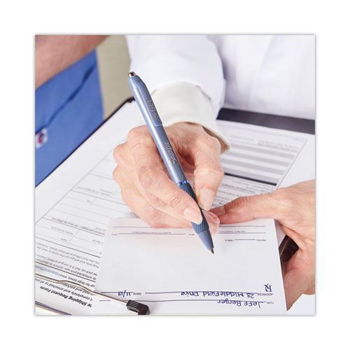 Product Details** Global Product Type Gel Pens Pen Style Retractable Pen Tip Type Conical Pen Point Size Type Medium Color Family Black Erasable Ink No Pen Sub-Brand & Product Family S-Gel™ Fashion Barrel Pen Type Gel Pen Pen Point Size 0.7 mm Pen Ink Color(s) Black Pen Barrel Color(s) Frost Blue Low-Viscosity Ink No Special Ink Properties Water-Based Gel Pen Grip Type Contoured Rubber Grip Visible Ink Supply No Pocket Clip Indicator Yes Product Biodegradability in Days 0 Pre-Consumer Recycled Content Percent 0% Post-Consumer Recycled Content Percent 0% Total Recycled Content Percent 0% Country Of Origin US Carton Weight 5 lbs. Carton Pack Quantity 36 PK Pack Quantity 4 EA UPC 071641186187 UNSPSC 60121524 Shipping Weight & Item Dimensions Weight 0.12 lbs. Length 7.6 in Height 3.25 in Width 0.65 in