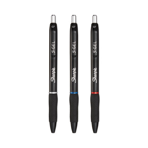 Product Details** Global Product Type Gel Pens Pen Style Retractable Pen Tip Type Conical Pen Point Size Type Medium Color Family Multicolor Erasable Ink No Refillable No Pen Sub-Brand & Product Family S-Gel™ High-Performance Pen Type Gel Pen Pen Point Size 0.7 mm Pen Ink Color(s) Assorted Pen Ink Color(s) Assortment Black,Blue,Red Pen Barrel Color(s) Black Airplane-Safe Ink No Low-Viscosity Ink No Special Ink Properties Water-Based Gel Pen Grip Type Comfort Visible Ink Supply No Pocket Clip Indicator Yes Product Biodegradability in Days 0 Pre-Consumer Recycled Content Percent 0% Post-Consumer Recycled Content Percent 0% Total Recycled Content Percent 0% Country Of Origin US Carton Weight 5 lbs. Carton Pack Quantity 12 PK Pack Quantity 12 EA UPC 071641174436 UNSPSC 60121524 Shipping Weight & Item Dimensions Weight 0.32 lbs. Length 0.588 in Height 6.716 in Width 7.558 in