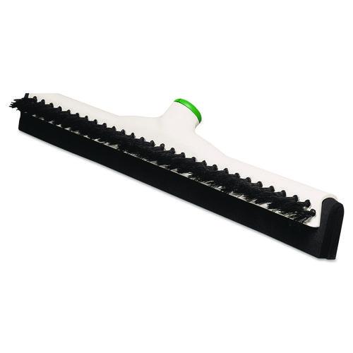 Scrub and squeegee with the combination sanitary brush. Features stiff polypropylene bristles for scrubbing action. Brush loosens dirt in grouted floors while 4″ natural black twin foam rubber blade squeegee removes dirt and solution. Splashguard. Durable, threaded socket accepts Acme threaded handles.