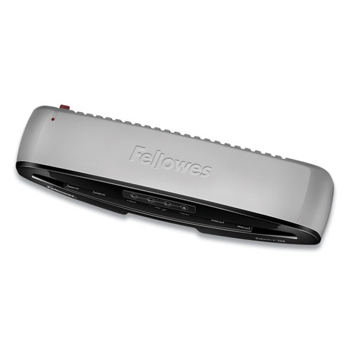 Fellowes Saturn 3i Laminator features a rapid one-minute warm-up with InstaHeat Technology. Accommodates multiple document sizes. Compatible with 3- and 5-mil hot-lamination pouches as well as self-adhesive cold-lamination pouches. Green light and audible beep indicate when machine is ready to laminate. Release lever disengages pouch for re-centering or removal. Auto Shut-Off saves energy and prevents overheating. Includes ImageLast starter kit with ten 3-mil letter-sized pouches. Perfect for use in the office, home office or school.