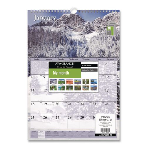 Product Details** Global Product Type Wall Calendars Dated Yes Academic Year No Calendar Format Monthly Edition Year 2026 Calendar Term 12-Month (Jan to Dec) Binding Type Wire-O Color Family Multicolor Refillable No Calendar Spread Format One Month per Page Julian Dates Yes Size (Bound-Side First) 12 x 17 Binding Details Twin-Wire Page Theme Landscape Photography Calendar Reference Blocks Current Year Sheet Color(s) White/Multicolor Hanger Style Wire Loop Reversible No Seasonal Availability Yes Product Biodegradability Indicator N Product Biodegradability in Days 0 Product Compostability Indicator N Pre-Consumer Recycled Content Percent 0% Post-Consumer Recycled Content Percent 0% Total Recycled Content Percent 0% Footnote 1 Block Size: 1.5 x 1.5 Country Of Origin CN Carton Weight 8 lbs. Carton Pack Quantity 12 EA Pack Quantity 0 UPC 038576400849 UNSPSC 44112002 Shipping Weight & Item Dimensions Weight 0.569 lbs. Length 0.3 in Height 12 in Width 17.25 in