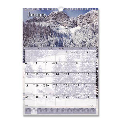 Escape with a stunning scenic image each month. Features full-color photos. One month per page with unruled blocks. Full-year calendar reference; federal holidays highlighted. Bonus page: current year reference calendar. Chipboard backing; white wirebound with hanging loop. Printed on high-quality paper with superior ink bleed resistance.