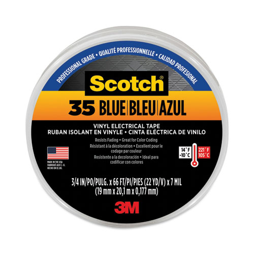 Designed for use in pase identification, color coding of motor leads and piping systems, and for marking safety areas. Has excellent electrical insulating properties, wraps smoothly, conforms well and holds over a wide range of temperatures. Polyvinyl chloride (PVC) backing. Pressure sensitive rubber based adhesive. Inhibits corrosion of electrical conductors.