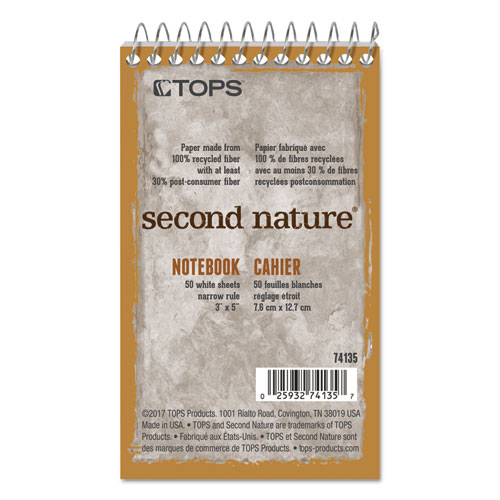 Second Nature Wirebound Notepads, Narrow Rule, Randomly Assorted Cover Colors, 50 White 3 x 5 Sheets