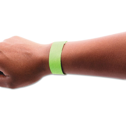 Product Details** Global Product Type Security/Crowd Management Wristbands Color(s) Green Material(s) Tyvek® Band/Adhesive Closure Wristbands Depicted Text Sequentially Numbered Wristband Type Security/Crowd Management Length 10″ Width 0.75″ Product Biodegradability in Days 0 Pre-Consumer Recycled Content Percent 0% Post-Consumer Recycled Content Percent 0% Total Recycled Content Percent 0% Footnote 1 Five wristbands per sheet, 20 sheets Country Of Origin US Carton Weight 1 lbs. Carton Pack Quantity 6 PK Pack Quantity 100 EA UPC 085288850608 UNSPSC 46182204 Shipping Weight & Item Dimensions Weight 0.1 lbs. Length 4.3 in Height 2.1 in Width 2.1 in