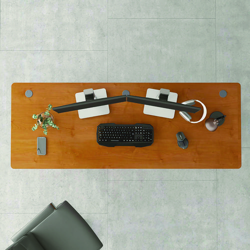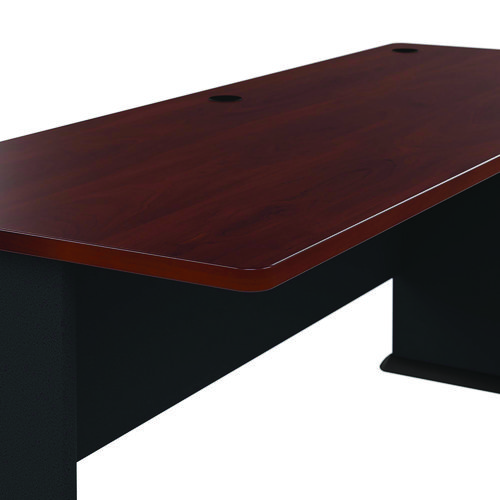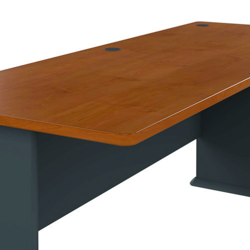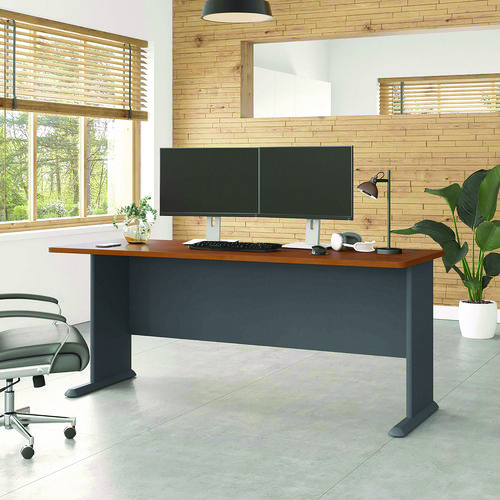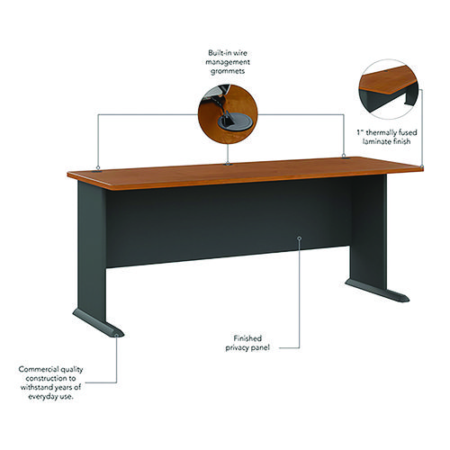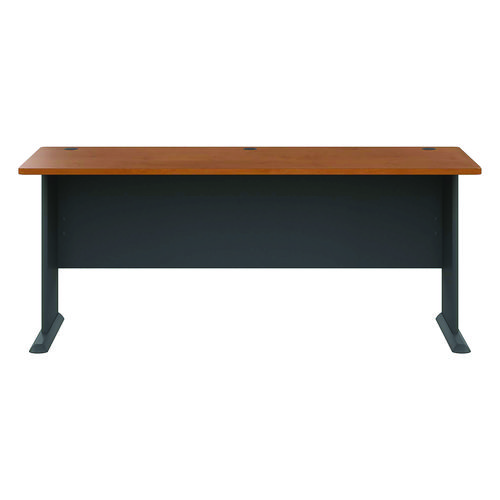 Product Details** Global Product Type Desk Shells Worksurface Shape Rectangular Color Family Cherry Pedestal Count 0 Keyboard/Mouse Platform Indicator No CPU Holder/Platform Indicator No Number of Drawers 0 Series Name Bush® Series A Collection Worksurface/Base Color Natural Cherry/Slate Gray Worksurface Material Thermally Fused Laminate Over Engineered Wood Edge Detail Profile Edge Band Base Material Engineered Wood,Thermally-Fused Laminate (TFL) Overall Width (Max) 71.63″ Overall Depth (Max) 26.88″ Overall Height (Max) 29.88″ Number of Shelves 0 For Use With Bush® Series A Collection Product Biodegradability in Days 0 Green Information EPA Primary Metal Free. Compliance Standards Level 1 Certified,Meets or Exceeds ANSI/BIFMA Standards Pre-Consumer Recycled Content Percent 45% Post-Consumer Recycled Content Percent 5% Total Recycled Content Percent 50% Country Of Origin US Carton Weight 102 lbs. Carton Pack Quantity 1 EA Pack Quantity 0 UPC 042976574727 UNSPSC 56101703 Shipping Weight & Item Dimensions Weight 102 lbs. Length 27.88 in Height 3.25 in Width 75.73 in Warranty Manufacturer’s ten-year warranty.