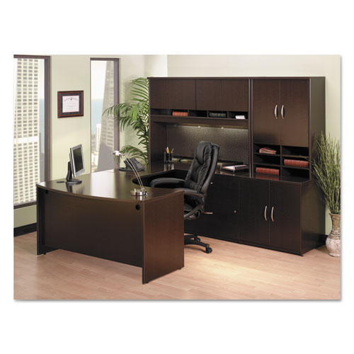 Customize your storage with the Series C Collection 30W Storage Cabinet for classic styling with clean lines. This convenient storage unit offers Euro-style self-closing hinges and a lock to secure your supplies. The interior offers ample space with an adjustable shelf to make room for electronics, printers and more. This unit is constructed with 100% thermally fused laminate for durability and superior resistance to scratches and stains. Integrated wire management grommet located in the back of the cabinet keeps your office neat, while adjustable leveling glides enable you to compensate for uneven floors. Combine the 30W Storage Cabinet with a 30W Hutch to expand your storage capacity, while creating an attractive wall unit. Place the Hutch at the end of your Series C desk to increase desk storage and function. Two Storage Cabinets work side-by-side and can accommodate a 60W Hutch for greater versatility.