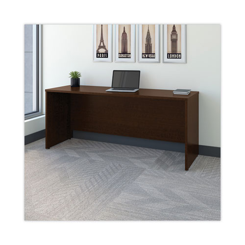 Product Details** Global Product Type Credenza Desk Shells Color Family Cherry Overall Width 71.13″ Top Material Thermally Fused Laminate Over Engineered Wood Color(s) Mocha Cherry/Graphite Gray Depth (Max) 23.38″ Overall Height 29.88″ Edge Detail Profile PVC Protective Edge Base Material Engineered Wood Top Thickness 1″ For Use With Bush® Series C Collection File Pedestals, Hutch with Doors, Desks, Return Bridge, Pencil Drawer and Keyboard Shelf Series Name Bush® Series C Collection Product Biodegradability in Days 0 Green Information Contains a minimum of 4% post-consumer recycled content and a minimum of 48% total recycled content. Compliance Standards Level 1 Certified,Meets or Exceeds ANSI/BIFMA Standards Country Of Origin US Carton Weight 111 lbs. Carton Pack Quantity 1 EA Pack Quantity 0 UPC 042976129262 UNSPSC 56101701 Shipping Weight & Item Dimensions Weight 111 lbs. Length 23.346 in Height 29.843 in Width 71.102 in Warranty Manufacturer’s ten-year warranty.