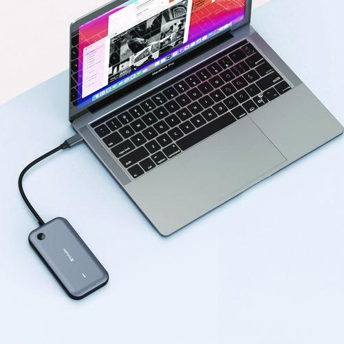 • Built-in hub with two USB-A ports and SD/microSD slots.