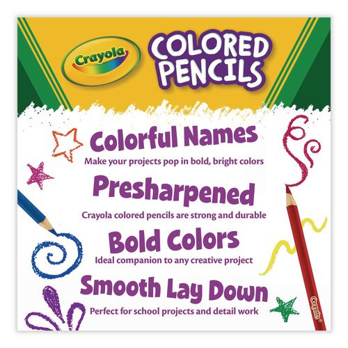 Crayola Colored Pencils are ready for use right out of the box! An essential art tool, these pencils feature bold colors and presharpened tips. Designed for durability, they are sure to last through many coloring book pages, creative projects and homework assignments. The reusable storage box makes it easy to take these colored pencils wherever you go. Stock up classrooms and craft rooms with these colorful essentials.