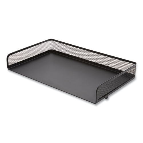 Keep paperwork and correspondence neatly organized. Stackable design lets you create a customized sorting system that fits your needs, so that you can develop a desktop system that maximizes your productivity. A sleek design aesthetic—featuring a tightly woven mesh body, a solid metal base and a flat-square frame with rounded edges—delivers reliable performance and extra durability with a contemporary, professional flair. Integrated rubber feet enhance stability while providing reliable worksurface protection.