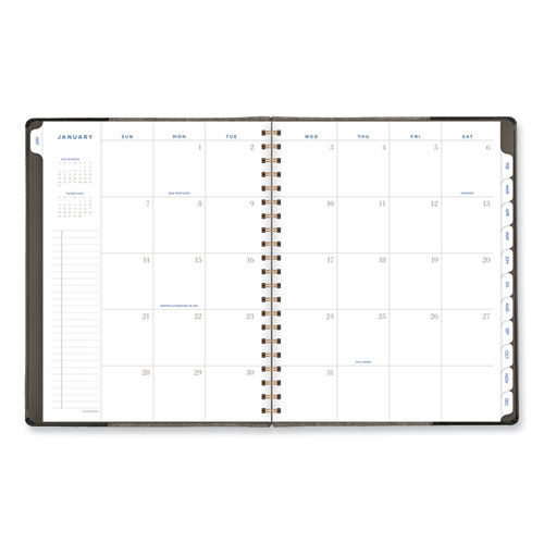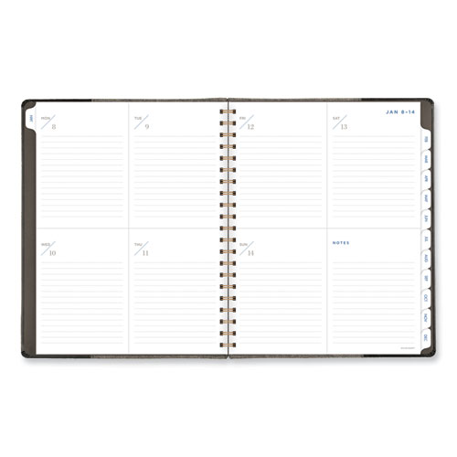 Give your plans a professional, polished edge. The Signature Collection Weekly/Monthly Planner features a contemporary two-tone, two-texture cover design with bronze foil accents to help you stay organized in style. But this planner isn’t just a pretty face, it’s built for real life-guaranteed to last all year. Plan your week, track appointments and prepare for events on ruled weekly planning pages, and use the extra space for notes and reminders. At the same time, keep an eye on the big picture. Tabbed monthly overviews let you look ahead and get a jump on your future plans. Special pages help you do more with your time. Maximize your productivity with the included holiday list, three-year reference calendar, events calendar, contact information pages and a generous notes section. As you plan away, the flexible, durable cover keeps everything in shape, while the twin-wire binding prevents snags when you throw it in your bag. All the way through, high-quality paper with superior ink-bleed resistance keeps your planning pages neat. Use the included double-sided poly pocket to keep any loose materials you might collect along the way.