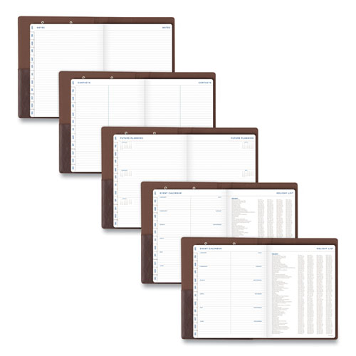 The AT-A-GLANCE® Signature Collection™ Monthly Clipfolio has distressed leather-like covers with stitched edges for a polished look that’s perfect for modern professionals. A clipboard on the clipfolio’s front cover is useful for securing loose papers and notes while on the go. The included monthly planner’s 13 month date range runs from Jan. Jan. to cover the full year and beyond. Planner’s one month per two-page spreads feature unruled daily blocks for open scheduling. Monthly spreads in planner also feature a ruled notes column for extra writing space and past/future month reference calendars to check dates as you plan. Each month is tabbed for easy navigation. Planner’s special pages include a holiday listing, 3-year reference calendars, an event calendar, contacts pages and notes pages. Clipfolio features an interior pocket to hold loose papers and a vertical slot to hold the removable planner.