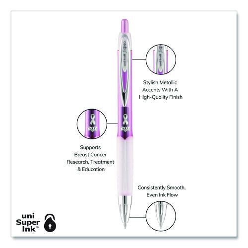 Product Details** Global Product Type Gel Pens Pen Style Retractable Pen Tip Type Needle Pen Point Size Type Medium Color Family Black Erasable Ink No Refillable Yes Pen Sub-Brand & Product Family Signo 207 Breast Cancer Awareness Pen Type Gel Pen Pen Point Size 0.7 mm Pen Ink Color(s) Black Pen Barrel Color(s) Translucent Pink/White Low-Viscosity Ink No Special Ink Properties Water-Based Gel Pen Grip Type Rubber Visible Ink Supply Yes Pocket Clip Indicator Yes Product Biodegradability in Days 0 Pre-Consumer Recycled Content Percent 0% Post-Consumer Recycled Content Percent 0% Total Recycled Content Percent 0% Pink Comments You can help uni-ball reach our goal donation of $200,000 or more to City of Hope for breast cancer research. 10¢ from each pen purchase will go toward that donation. Country Of Origin JP Carton Weight 5 lbs. Carton Pack Quantity 48 PK Pack Quantity 2 EA UPC 030246000854 UNSPSC 60121524 Shipping Weight & Item Dimensions Weight 0.061 lbs. Length 7.62 in Height 0.73 in Width 2.12 in
