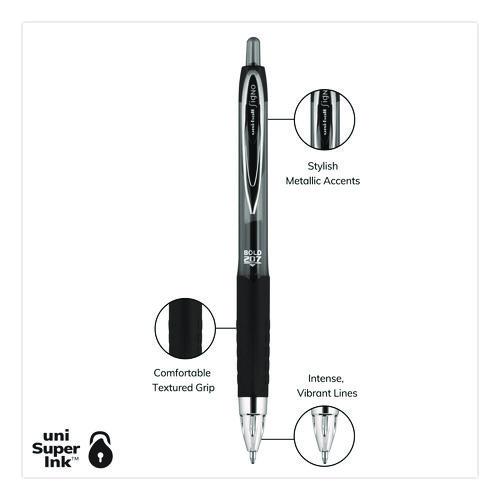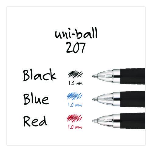 Stock your office, home or classroom with 207 Retractable Gel Pens from uni-ball with a stainless steel tip that resists bending and breaking. Even-flowing, pigment-based gel ink delivers a smooth writing experience for intense, vibrant lines, ensuring that every mark is brilliantly communicated. Use these retractable gel pens for everyday writing tasks, check signing and all of your important signatures, trusting its quick-drying uni Super Ink. Innovative uni Super Ink technology effectively entraps the gel ink into the paper, producing fraud, fade and water-resistant documents that resist check washing or bleaching. A textured grip offers greater comfort and control as you continue writing, while a translucent ink window indicates the level of gel ink remaining, so you don’t run out unexpectedly. The sleek design of the 207 with modern metal accents gives the retractable gel pen a stylish touch.