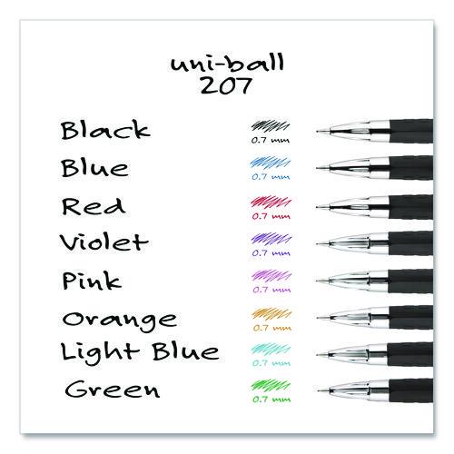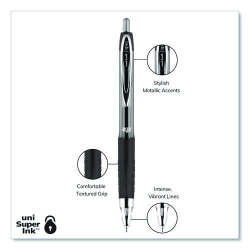 Stock your office, home or classroom with 207 Retractable Gel Pens from uni-ball with a stainless steel tip that resists bending and breaking. Even-flowing, pigment-based gel ink delivers a smooth writing experience for intense, vibrant lines, ensuring that every mark is brilliantly communicated. Use these retractable gel pens for everyday writing tasks, check signing and all of your important signatures, trusting its quick-drying uni Super Ink. Innovative uni Super Ink technology effectively entraps the gel ink into the paper, producing fraud, fade and water-resistant documents that resist check washing or bleaching. A textured grip offers greater comfort and control as you continue writing, while a translucent ink window indicates the level of gel ink remaining, so you don’t run out unexpectedly. The sleek design of the 207 with modern metal accents gives the retractable gel pen a stylish touch.