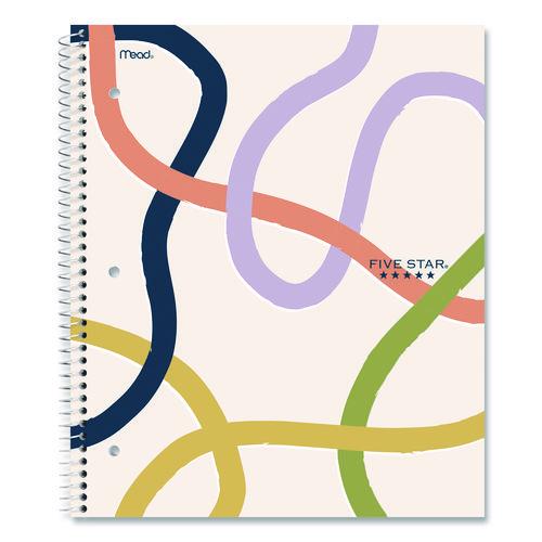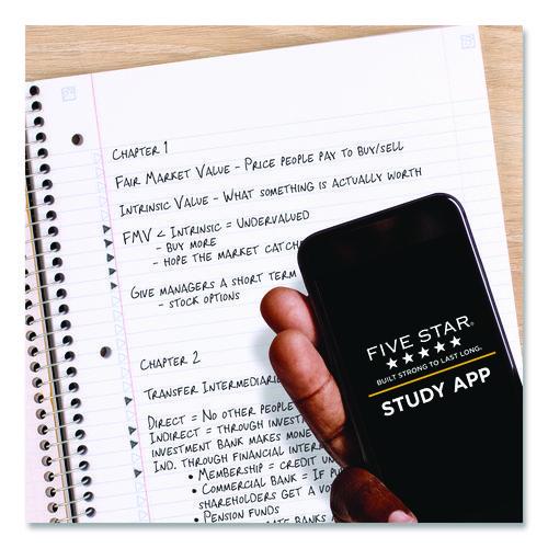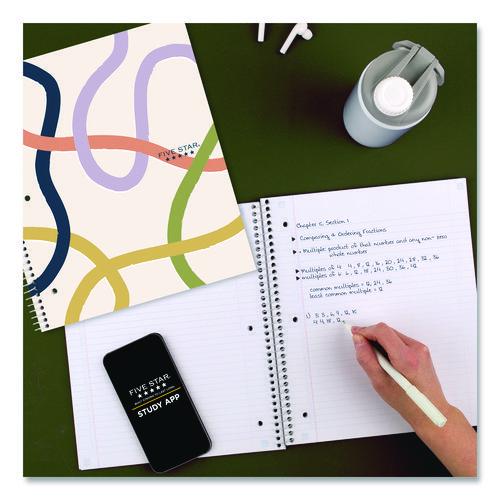 Express yourself this year with a confident and energetic vibe! Constructed of durable covers and high-quality paper, making it the perfect choice for notetaking and organization. Lasts all year, guaranteed. Charming, minimal artwork for a touch of playful style. Scan, study and organize your notes with the Five Star® Study App. Create instant flashcards and sync your notes to Google Drive to access them anywhere from any device. Sheets fight ink bleed and are perforated for easy tear out. Tough pockets help prevent tears and hold loose sheets securely. Durable, plastic front cover is water-resistant to help protect your notes and our Spiral Lock® wire helps prevent snags on clothes and backpacks. Notebook is recyclable—just remove the reinforcement tape on the pocket and recycle the rest.