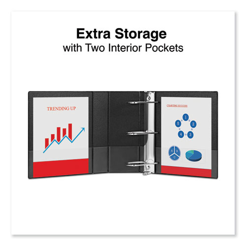 Neatly store and access your filing documents with standard view binders. Slanted D-rings allow smooth page turning and hold more documents than the same-size, round rings. Open and close triggers provide fast, nearly effortless access to single sheets. The oversized, transparent, panels provide endless customization options. The view binders cover tabbed dividers, sheet protectors, and other organization accessories. Interior includes two pockets for convenient access to single pages and reference materials. Constructed with nonstick, archival-safe material that’s designed to prevent ink from being lifted off printed pages.
