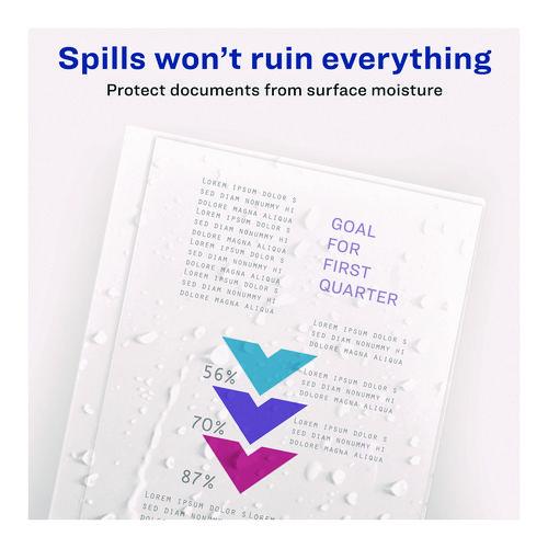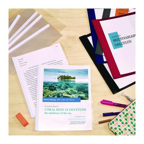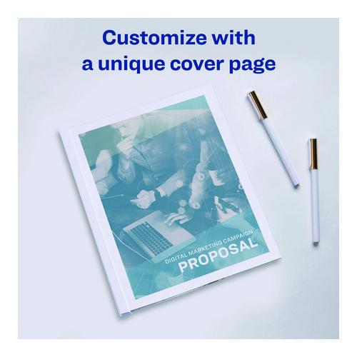 Prepare papers for presentations, proposals, or business meetings with these report covers. The sliding bars fit neatly over the edges of your pages, eliminating the need for staples, paper clips, or hole punches. These Avery report covers feature clear construction so text and graphics show through.