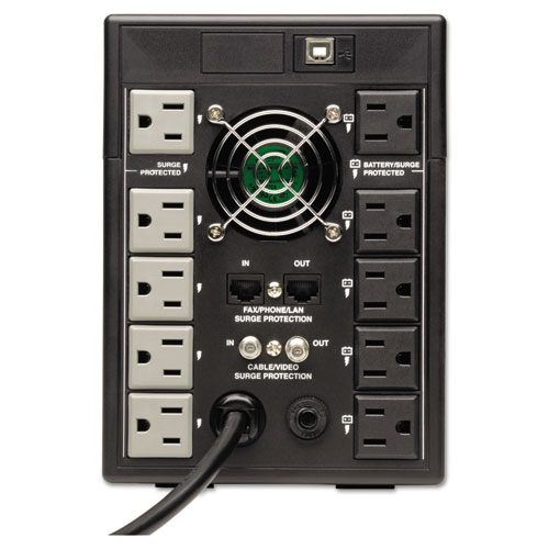 This line-interactive UPS system protects your valuable equipment from damage, downtime and data loss. Protect home and office computer systems as well as audio and video equipment. This UPS system will support an energy efficient desktop computer and LCD monitor. This UPS system has a feature called automatic voltage regulation (AVR) and it detects when input voltage is out of bounds and corrects it without using the battery. In addition to protecting against surges on the AC power line, this UPS system protects your equipment against surges on connected phone, network and coaxial lines. The illuminated LCD provides easy access to detailed UPS settings and information. This UPS system saves energy, produces less heat, shrinks your carbon footprint and reduces annual operating costs.