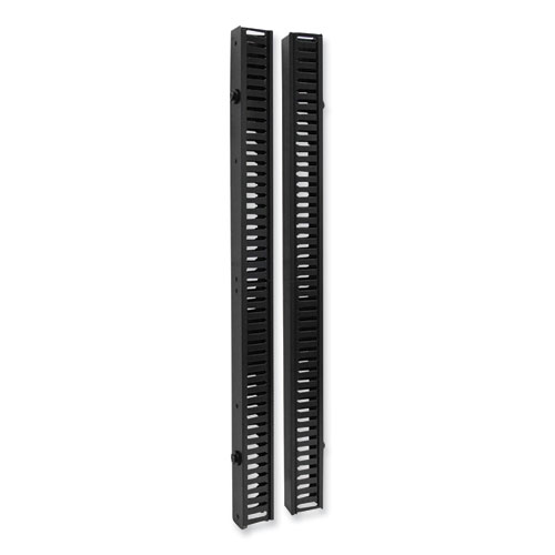 Split into two, three-foot sections, this vertical cable organizer offers flexible configuration options. Duct-style cable manager keeps cables organized within a closed compartment, helping eliminate cable stress. Versatile organizer can be used with SmartRack enclosures or open racks. Toolless button mounts provide for easy installation. Durable, cold rolled steel construction ensures years of reliable use.