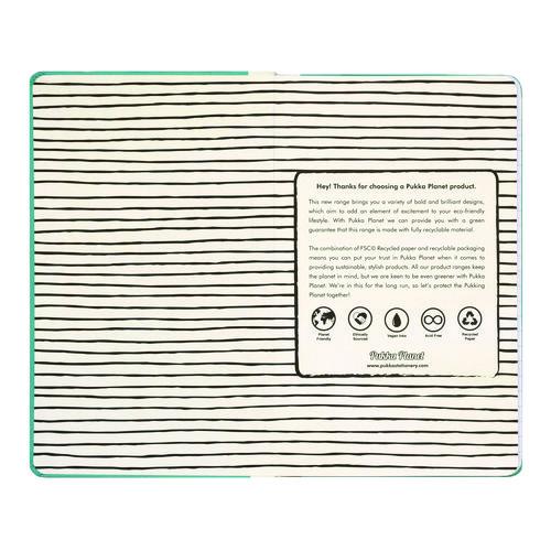 Product Details** Global Product Type General Purpose Notebooks Pocket Sized No Book-Binding Type Sewn Color Family Multicolor Number of Subjects/Sections 1 Sheet Size (Bound-Side First) 8.3 x 5.8 Sheet Rule/Format Type Medium/College Rule Book-Binding Details Casebound: Hard Cover Book-Binding Edge Side Cover Design/Theme Sustainability Message Cover Color Turquoise/White/Orange Book-Spine Length 8.27″ Book Width 5.24″ Front-Cover Material Paper on Board Back-Cover Material Paper on Board Sheets per Book/Journal 96 Sheet Color White Sheet Ruling Size 8 mm Note-Rule Lines per Sheet 24 Sheet-Ruling Color Gray Sheet Basis Weight (lb) 21 lb Bond Dated No Product Biodegradability Indicator N Product Biodegradability in Days 0 Product Compostability Indicator N Pre-Consumer Recycled Content Percent 90% Post-Consumer Recycled Content Percent 0% Total Recycled Content Percent 90% Footnote 1 Paper Weight (gsm): 80 gsm Country Of Origin CN Carton Weight 16 lbs. Carton Pack Quantity 24 EA Pack Quantity 0 UPC 000000000000 UNSPSC 14111514 Shipping Weight & Item Dimensions Weight 0.645 lbs. Length 8.19 in Height 0.78 in Width 5.187 in