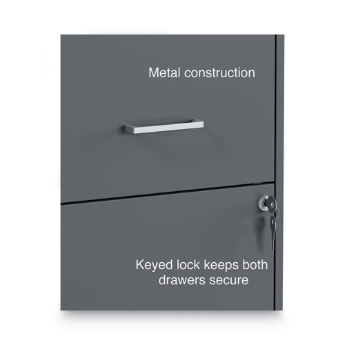 Product Details** Global Product Type Vertical Desk Pedestals Number of Drawers 2 Drawer Configuration File/File Anti-Tip Mechanism Indicator Yes Color Family Gray Pedestal Sub-Type Indicator No Caster Indicator No Color(s) Charcoal Pedestal Types Freestanding: Full-Height Overall Width 14″ Overall Depth 18″ Overall Height 24.1″ Base Material Steel Top Material Steel Glide/Feet Indicator Yes Glide/Feet Details Ball Bearing Glides Document Size Accommodation Letter Series Name Alera® Soho Cabinet Product Biodegradability Indicator N Product Biodegradability in Days 0 Product Compostability Indicator N Pre-Consumer Recycled Content Percent 0% Post-Consumer Recycled Content Percent 0% Total Recycled Content Percent 0% Country Of Origin TW Carton Weight 29 lbs. Carton Pack Quantity 1 EA Pack Quantity 0 UPC 042167000073 UNSPSC 56101702 Shipping Weight & Item Dimensions Weight 28.66 lbs. Length 27.56 in Height 17.32 in Width 20.87 in Warranty Manufacturer’s limited five-year warranty.
