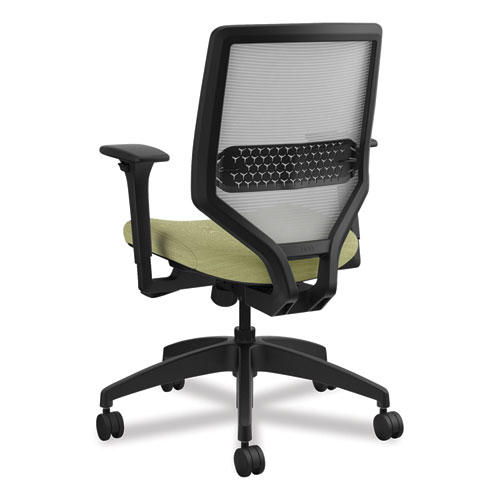 Product Details** Global Product Type Office Chairs Color Family Green Arms Included Yes Pneumatic Seat Height Adjustment Yes Tilt Tension/Tilt Lock Yes Integral Lumbar Support No Seat Surface Material Family Fabric Recommended Application Area(s) General Office & Task Seat Color Meadow Back Color Fog Arm Type Padded T-Bar Weight Capacity Supports Up to 300 lb Back Height Adjustment No Seat Glide Mechanism Yes Knee Tilt No Synchronized Knee Tilt No Dual-Action Tilt No Posture Lock No Multi-Task Control No Asynchronous Control No Dual-Clutch Posture Control No Variable Synchro-Tilt No Arm Adjustability Height,Width Armrest Color Black Armrest Material Plastic Distance Between Arms 20″ Arm Height From Seat 11″ Overall Width Maximum 29.5″ Overall Depth Maximum 29.5″ Overall Height Minimum 38″ Overall Height Maximum 43″ Seat Width Maximum 19″ Seat Depth Maximum 18″ Seat Height Minimum 18″ Seat Height Maximum 23″ Seat Surface Material Fabric Back Width Maximum 18″ Back Height Maximum 22″ Back Surface Material Mesh Back Surface Material Family Mesh Base/Frame Color Black Base/Frame Material(s) Plastic Caster/Glide Details Five Casters Product Biodegradability Indicator N Product Biodegradability in Days 0 Product Compostability Indicator N Compliance Standards Level 2 Certified,Meets or Exceeds ANSI/BIFMA Standards,Meets or Exceeds ISTA Performance Standards,SCS Indoor Advantage Certified,SCS Indoor Advantage Gold Certified Pre-Consumer Recycled Content Percent 38% Post-Consumer Recycled Content Percent 10% Total Recycled Content Percent 48% Disclaimer Statement Casters supplied with this chair are not suitable for all floor types. Country Of Origin US Carton Weight 49 lbs. Carton Pack Quantity 1 EA Pack Quantity 0 UPC 191734754748 UNSPSC 56101504 Shipping Weight & Item Dimensions Weight 49 lbs. Length 26.75 in Height 18.38 in Width 26.75 in Warranty Backed by the HON Full Lifetime Warranty.
