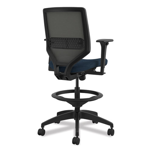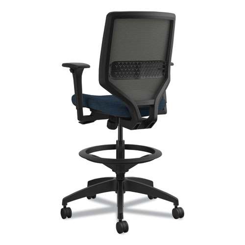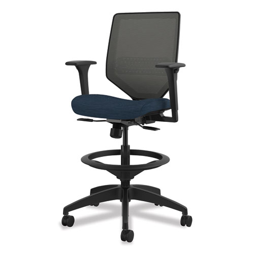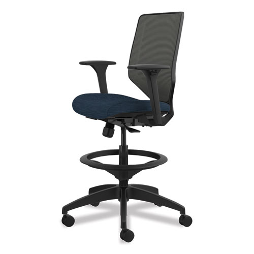 Product Details** Global Product Type Drafting & Task Stools Color Family Blue Arms Included Yes Pneumatic Seat Height Adjustment Yes Tilt Tension/Tilt Lock Yes Integral Lumbar Support No Seat Surface Material Family Fabric Recommended Application Area(s) Assembly/Repair & Technical Task,General Office & Task Seat Color Midnight Back Color Charcoal Arm Type Padded T-Bar Weight Capacity Supports Up to 300 lb Back Height Adjustment No Seat Glide Mechanism No Knee Tilt No Synchronized Knee Tilt No Dual-Action Tilt No Posture Lock No Multi-Task Control No Asynchronous Control No Dual-Clutch Posture Control No Variable Synchro-Tilt No Arm Adjustability Height,Width Armrest Color Black Armrest Material Plastic Distance Between Arms 20″ Arm Height From Seat 11″ Overall Width Maximum 29.5″ Overall Depth Maximum 29.5″ Overall Height Minimum 43″ Overall Height Maximum 53″ Seat Width Maximum 19″ Seat Depth Minimum 16″ Seat Depth Maximum 19″ Seat Height Minimum 23″ Seat Height Maximum 33″ Seat Surface Material Fabric Back Width Maximum 18″ Back Height Maximum 22″ Back Surface Material Mesh Back Surface Material Family Mesh Base/Frame Color Black Base/Frame Material(s) Plastic Caster/Glide Details Five Casters Product Biodegradability Indicator N Product Biodegradability in Days 0 Product Compostability Indicator N Compliance Standards Level 2 Certified,Meets or Exceeds ANSI/BIFMA Standards,Meets or Exceeds ISTA Performance Standards,SCS Indoor Advantage Certified,SCS Indoor Advantage Gold Certified Pre-Consumer Recycled Content Percent 38% Post-Consumer Recycled Content Percent 10% Total Recycled Content Percent 48% Disclaimer Statement Casters supplied with this chair are not suitable for all floor types. Country Of Origin US Carton Weight 51 lbs. Carton Pack Quantity 1 EA Pack Quantity 0 UPC 192352089502 UNSPSC 56101504 Shipping Weight & Item Dimensions Weight 51 lbs. Length 26.75 in Height 26.75 in Width 18.375 in Warranty Backed by the HON Full Lifetime Warranty.