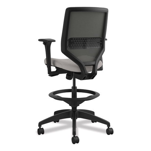 Product Details** Global Product Type Drafting & Task Stools Color Family Gray Arms Included Yes Pneumatic Seat Height Adjustment Yes Tilt Tension/Tilt Lock Yes Integral Lumbar Support No Seat Surface Material Family Fabric Recommended Application Area(s) Assembly/Repair & Technical Task,General Office & Task Seat Color Sterling Back Color Charcoal Arm Type Padded T-Bar Weight Capacity Supports Up to 300 lb Back Height Adjustment No Seat Glide Mechanism No Knee Tilt No Synchronized Knee Tilt No Dual-Action Tilt No Posture Lock No Multi-Task Control No Asynchronous Control No Dual-Clutch Posture Control No Variable Synchro-Tilt No Arm Adjustability Height,Width Armrest Color Black Armrest Material Plastic Distance Between Arms 20″ Arm Height From Seat 11″ Overall Width Maximum 29.5″ Overall Depth Maximum 29.5″ Overall Height Minimum 43″ Overall Height Maximum 53″ Seat Width Maximum 19″ Seat Depth Minimum 16″ Seat Depth Maximum 19″ Seat Height Minimum 23″ Seat Height Maximum 33″ Seat Surface Material Fabric Back Width Maximum 18″ Back Height Maximum 22″ Back Surface Material Mesh Back Surface Material Family Mesh Base/Frame Color Black Base/Frame Material(s) Plastic Caster/Glide Details Five Casters Product Biodegradability Indicator N Product Biodegradability in Days 0 Product Compostability Indicator N Compliance Standards Level 2 Certified,Meets or Exceeds ANSI/BIFMA Standards,Meets or Exceeds ISTA Performance Standards,SCS Indoor Advantage Certified,SCS Indoor Advantage Gold Certified Pre-Consumer Recycled Content Percent 38% Post-Consumer Recycled Content Percent 10% Total Recycled Content Percent 48% Disclaimer Statement Casters supplied with this chair are not suitable for all floor types. Country Of Origin US Carton Weight 51 lbs. Carton Pack Quantity 1 EA Pack Quantity 0 UPC 193492463528 UNSPSC 56101504 Shipping Weight & Item Dimensions Weight 51 lbs. Length 26.75 in Height 26.75 in Width 18.375 in Warranty Backed by the HON Full Lifetime Warranty.