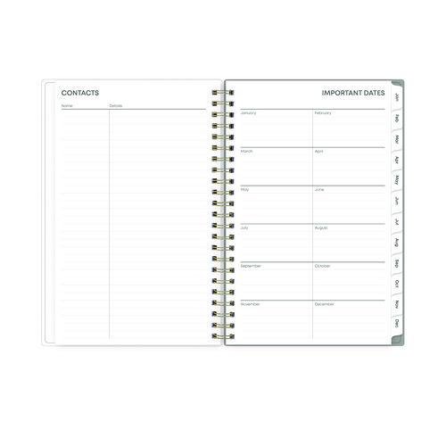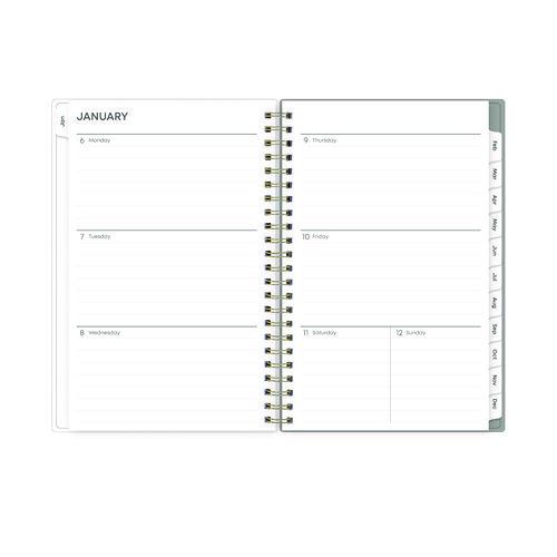 Product Details** Global Product Type Appointment Book/Personal Organizers Dated Yes Academic Year No Calendar Format Weekly/Monthly Edition Year 2025 Calendar Term 12-Month (Jan to Dec) Binding Type Wire-O Color Family Multicolor Refillable No Calendar Spread Format One Week per Two-Page Spread,One Month per Two-Page Spread Julian Dates Yes Size (Bound-Side First) 8 x 5 Binding Details Twin-Wire Cover Theme Floral Artwork Cover Color(s) Multicolor Cover Material(s) Polypropylene Binding Color(s) Gold Appointment Ruling Open Scheduling Calendar Reference Blocks One Past Month,One Future Month Separate Sections (6) Bonus Past Monthly Spreads (July-Dec),Contacts Pages,Important Dates,Notes Pages,Two-Year Reference Calendar,Yearly Goals Sheets per Calendar/Planner 70 Sheet Color(s) White/Black Reversible No Seasonal Availability Yes Product Biodegradability Indicator N Product Biodegradability in Days 0 Product Compostability Indicator N Pre-Consumer Recycled Content Percent 0% Post-Consumer Recycled Content Percent 0% Total Recycled Content Percent 0% Disclaimer Statement This product was made using wood sourced from a certified managed forest. Country Of Origin CN Carton Weight 4 lbs. Carton Pack Quantity 6 EA Pack Quantity 0 UPC 699931915967 UNSPSC 44112005 Shipping Weight & Item Dimensions Weight 0.43 lbs. Length 8.125 in Height 0.625 in Width 5.875 in
