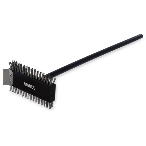 High-strength metal bristles remove carbon deposits, rust, burned-on food buildup from high-temperature ovens and grills. Stainless steel scraper loosens debris for a deeper clean. Built to last even in busy kitchens. Finished with long, sturdy wood handle for increased reach.