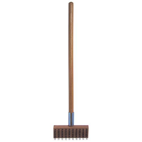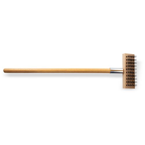 High-strength metal bristles remove carbon deposits, rust, burned-on food buildup from high-temperature ovens and grills. Stainless steel scraper loosens debris for a deeper clean. Built to last even in busy kitchens. Finished with long, sturdy wood handle for increased reach.