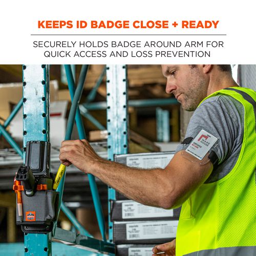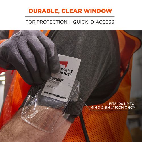 Product Details** Global Product Type Arm Band Card Holder Kits Orientation Vertical Name Badge Holder Material(s) Elastic,Vinyl Name Badge Holder Length 4.25″ Name Badge Holder Width 3.75″ Name Badge Holder Color(s) Black/Clear Load Orientation Top Name Badge Label Length 4″ Name Badge Label Width 2.5″ For Use With Access Card,ID Badge Product Biodegradability Indicator N Product Biodegradability in Days 0 Product Compostability Indicator N Pre-Consumer Recycled Content Percent 0% Post-Consumer Recycled Content Percent 0% Total Recycled Content Percent 0% Disclaimer Statement Id badges are sold separately. Item may not ship as shown. Country Of Origin CN Carton Weight 1 lbs. Carton Pack Quantity 10 PK Pack Quantity 10 EA UPC 720476199755 UNSPSC 55121804 Shipping Weight & Item Dimensions Weight 0.5 lbs. Length 9.5 in Height 2 in Width 4.5 in