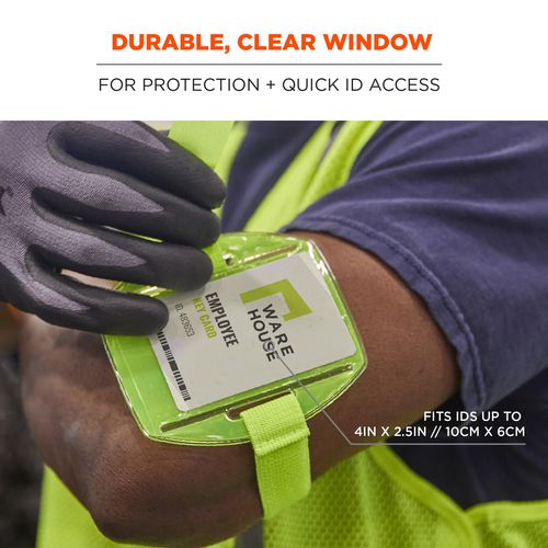 Product Details** Global Product Type Arm Band Card Holder Kits Orientation Vertical Name Badge Holder Material(s) Elastic,Vinyl Name Badge Holder Length 4.25″ Name Badge Holder Width 3.75″ Name Badge Holder Color(s) Lime Load Orientation Top Name Badge Label Length 4″ Name Badge Label Width 2.5″ For Use With Access Card,ID Badge Product Biodegradability Indicator N Product Biodegradability in Days 0 Product Compostability Indicator N Pre-Consumer Recycled Content Percent 0% Post-Consumer Recycled Content Percent 0% Total Recycled Content Percent 0% Disclaimer Statement Id badges are sold separately. Item may not ship as shown. Country Of Origin CN Carton Weight 1 lbs. Carton Pack Quantity 10 PK Pack Quantity 10 EA UPC 720476199700 UNSPSC 55121804 Shipping Weight & Item Dimensions Weight 0.5 lbs. Length 9.5 in Height 2 in Width 4.5 in
