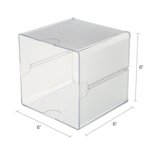 Product Details** Global Product Type Multipurpose Desktop Supplies Organizers Number of Compartments 1 Material(s) Plastic Color(s) Clear Desktop Supplies Organizer Type Multipurpose Overall Width 6″ Overall Depth 6″ Overall Height 6″ Product Biodegradability Indicator N Product Biodegradability in Days 0 Product Compostability Indicator N Package Includes Connecting Clip Pre-Consumer Recycled Content Percent 0% Post-Consumer Recycled Content Percent 0% Total Recycled Content Percent 0% Special Features Desk Cube Country Of Origin CN Carton Weight 5 lbs. Carton Pack Quantity 6 EA Pack Quantity 0 UPC 079916023786 UNSPSC 44111503 Shipping Weight & Item Dimensions Weight 0.59 lbs. Length 8 in Height 6.5 in Width 6.5 in