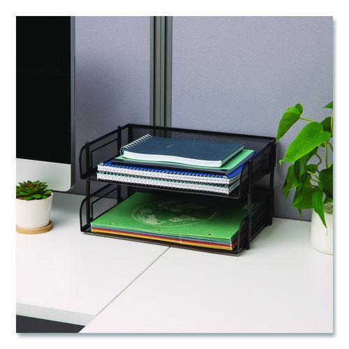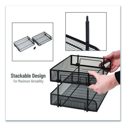 Product Details** Global Product Type Horizontal & Stacking Desktop Document Racks & Sorters For File Size Letter Load Orientation Side Color Family Black Color(s) Black Material(s) Metal Mesh Width 10″ Depth 13.5″ Height 2.5″ Product Biodegradability Indicator N Product Biodegradability in Days 0 Product Compostability Indicator N Pre-Consumer Recycled Content Percent 0% Post-Consumer Recycled Content Percent 0% Total Recycled Content Percent 0% Country Of Origin CN Carton Weight 21 lbs. Carton Pack Quantity 8 PK Pack Quantity 2 EA UPC 887530028120 UNSPSC 44111503 Shipping Weight & Item Dimensions Weight 2.35 lbs. Length 15 in Height 3.2 in Width 10.2 in