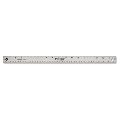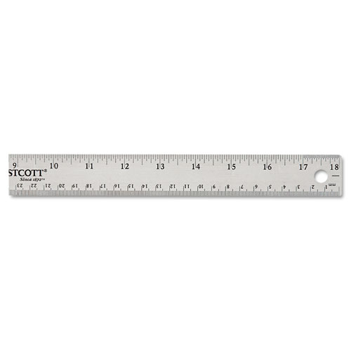 Nearly indestructible, warp-free, bend-resistant stainless steel ruler is ideal for precision tasks. Nonslip cork backing helps ensure precise measurements. Attractive, bright and tasteful, metallic finish fits right into modern office environments. Etched, bright white standard and metric markings deliver easy readability. First and last inches feature 1/32″ gradations. Drilled hook hole on one end for convenient tool-board storage.