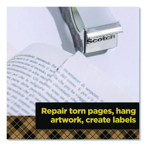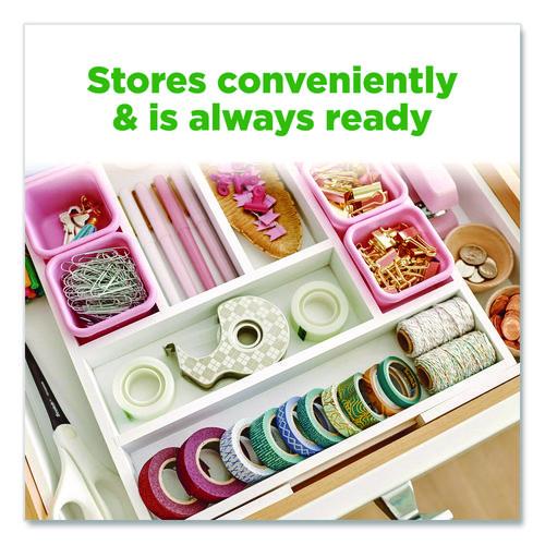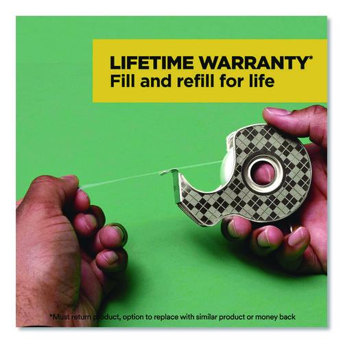 Grasp empty tape core and remove. Replace with a new tape roll. Refill. Reuse. Repeat: reuse the handheld stainless steel office tape dispenser for life, refill with any Scotch Brand Tape and repeat with the included refill roll. Metal blade cuts tape effortlessly, use caution with the sharp blade. For any home looking to use more plant-based materials, turn to Scotch Tape for your favorite tape projects, like labeling, light hanging, repairing, decorating and more. Made with 66% plant-based adhesive, this tape has the same great performance you know and expect from the original Scotch Magic Tape. This plant-based adhesive tape has the strength and holding power and disappears just like the original, tried-and-true Magic Tape. With a matte finish, this tape provides a clean finish that blends nicely on a variety of surfaces. It is perfect for fixing torn or ripped documents such as birth or wedding certificates and is great for school projects, because you can write on it with a pen, pencil, or marker. The starter pack includes one refillable and reusable handheld Scotch Stainless Steel Tape Dispenser and two rolls of 0.75 in x 550 in Scotch Magic Tape made with 66% plant-based adhesive.