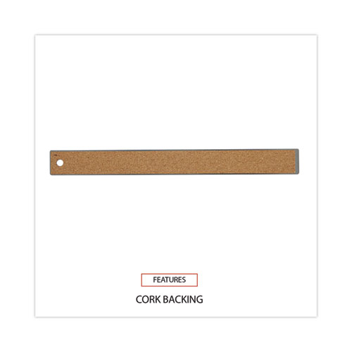 No more snapped or broken rulers that require frequent replacement. The long-lasting, stainless steel ruler holds perfect measure, even in the toughest environments. Constructed with a cork backing to prevent slipping on paper and other surfaces. The ruler’s end is pierced with a convenient hang-up hole to keep you organized. Measurement markers in 1/16-inch increments. Contains both standard and metric measurement markings.