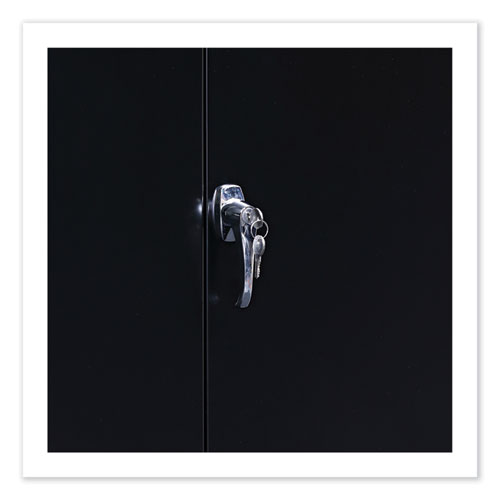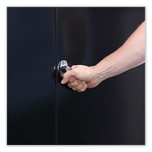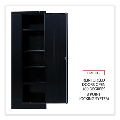 Product Details** Global Product Type Office & All-Purpose Storage Cabinets Color(s) Black Number of Shelves 4, 3 Adjustable Shelf Capacity (Weight) 150 lbs Material(s) Industrial Grade Steel Overall Width 36″ Overall Depth 18″ Overall Height 72″ Door Quantity 2 Series Name Alera® Standard Assembled Storage Cabinet Product Biodegradability Indicator N Product Biodegradability in Days 0 Product Compostability Indicator N Compliance Standards Meets or Exceeds ANSI/BIFMA Standards,SCS Indoor Advantage Certified,SCS Indoor Advantage Gold Certified Pre-Consumer Recycled Content Percent 0% Post-Consumer Recycled Content Percent 0% Total Recycled Content Percent 0% Special Features 72″ High Cabinet—One fixed and three adjustable shelves. Country Of Origin US Carton Weight 123 lbs. Carton Pack Quantity 1 EA Pack Quantity 0 UPC 042167000158 UNSPSC 56101530 Shipping Weight & Item Dimensions Weight 123 lbs. Length 72 in Height 18 in Width 36 in Warranty Manufacturer’s limited five-year warranty.