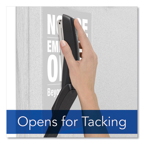 • Stapler opens fully for instant tacking ability and features a reversible anvil to create temporary pin staples.