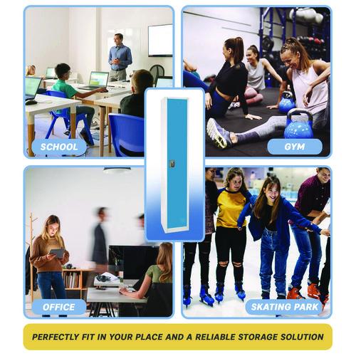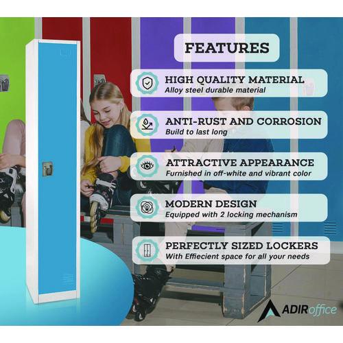 Crafted from high-quality steel, this locker is built to last and withstand the test of time. It is available in seven vibrant colors, making it a stylish addition to any office or school environment. With ample storage space for textbooks, clothes, personal belongings, and more, this locker ensures that your items are always organized and secure. Each locker door can be locked independently with included keys or accompanying locks, providing optimal security for your peace of mind. The minimalist design of our locker makes it suitable for a wide range of spaces. They all come equipped with coat and bag hooks, making organization easy and accessible. Proper air circulation is enabled with vented doors, keeping your items fresh and dry all day long. Additionally, each door features a metal nameplate that can be used for locker assignments or personalization. Assembling the locker is a breeze too with complete instructions and installation guidance.