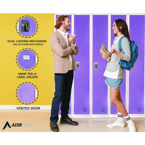 Crafted from high-quality steel, this locker is built to last and withstand the test of time. It is available in seven vibrant colors, making it a stylish addition to any office or school environment. With ample storage space for textbooks, clothes, personal belongings, and more, this locker ensures that your items are always organized and secure. Each locker door can be locked independently with included keys or accompanying locks, providing optimal security for your peace of mind. The minimalist design of our locker makes it suitable for a wide range of spaces. They all come equipped with coat and bag hooks, making organization easy and accessible. Proper air circulation is enabled with vented doors, keeping your items fresh and dry all day long. Additionally, each door features a metal nameplate that can be used for locker assignments or personalization. Assembling the locker is a breeze too with complete instructions and installation guidance.